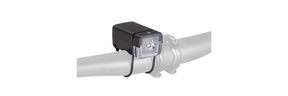 - Installs in seconds with a silicone strap system. Just pull the strap under the handlebar and drop it into the slot on the light body.