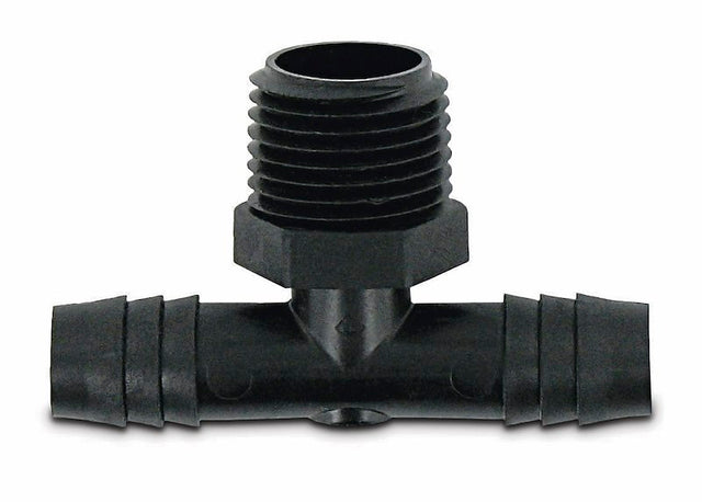 Fresh Water Fitting; Tee Male Adapter; 1/2 Inch Male NPT x 1/2 Inch Barb x 1/2 Inch Barb; Plastic; Without Retail Package