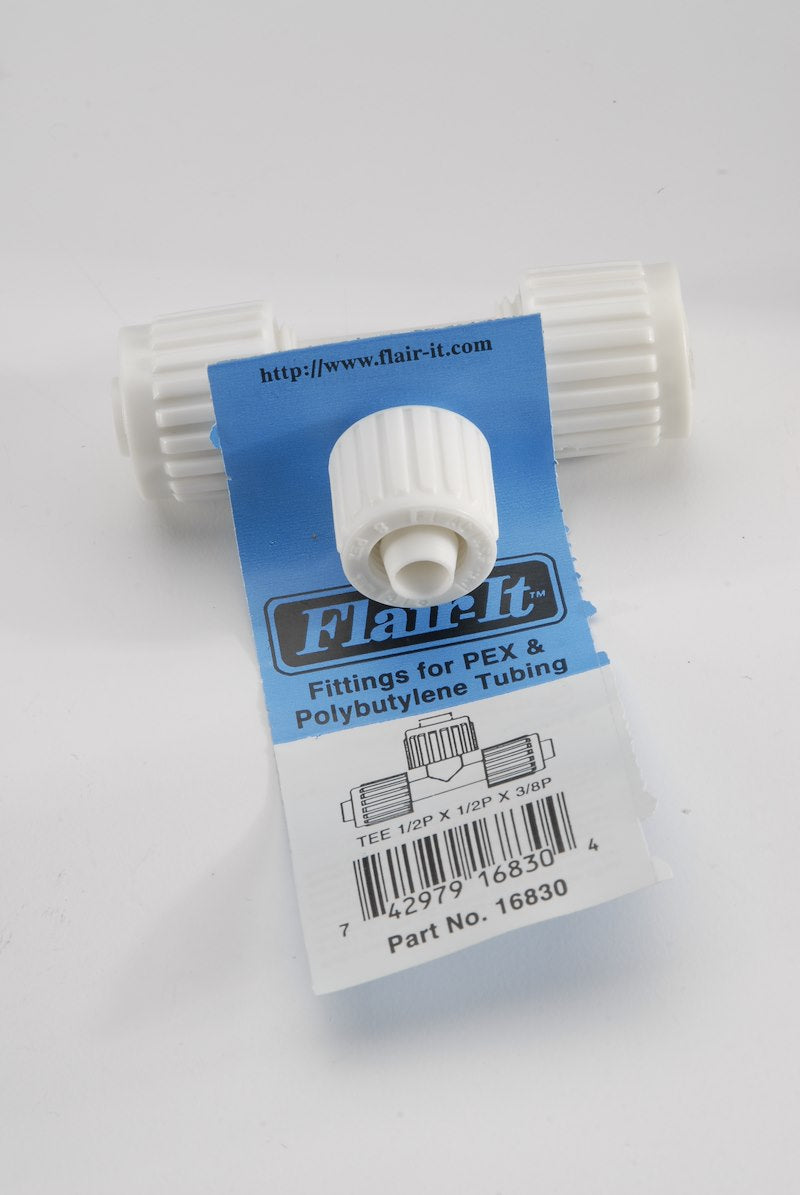 Fresh Water Fitting; Flair-It ™; Adapter; 1/2 Inch PEX x 1/2 Inch PEX x 3/8 Inch PEX; Reducing Tee; White; Plastic;