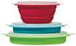 Kitchen Bowl; Storage Bowl Set; Blue/ Green/ Red; One 1.5 Cup Capacity/ One 3 Cup Capacity/ One 5 Cup Capacity; Round; Collapses To 1/2 Of Its Original Size; Dishwasher Safe; Polypropylene Plastic; Set Of 3; With Snap-On Lid