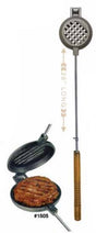 Campfire Cookware; Hamburger Griller; For Roasting Burgers/ Chicken/ Crab Cakes And Meatballs; Cast Iron; Round; 4-1/4 Inch Diameter Head;28 Inch Overall Length; 2.25 Pounds Weight