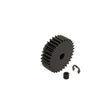Strong and durable steel for long-lasting performance in extreme RC conditions - Precision manufactured wide tooth profile for smooth operation - 'D' shaped hole to match motor shaft profile so drive and brakes are not lost if the set-screw backs out - Suits 5mm motor shaft diameter - Precision manufactured threaded set-screw hole - E-clip supplied for motor shaft pinion retention