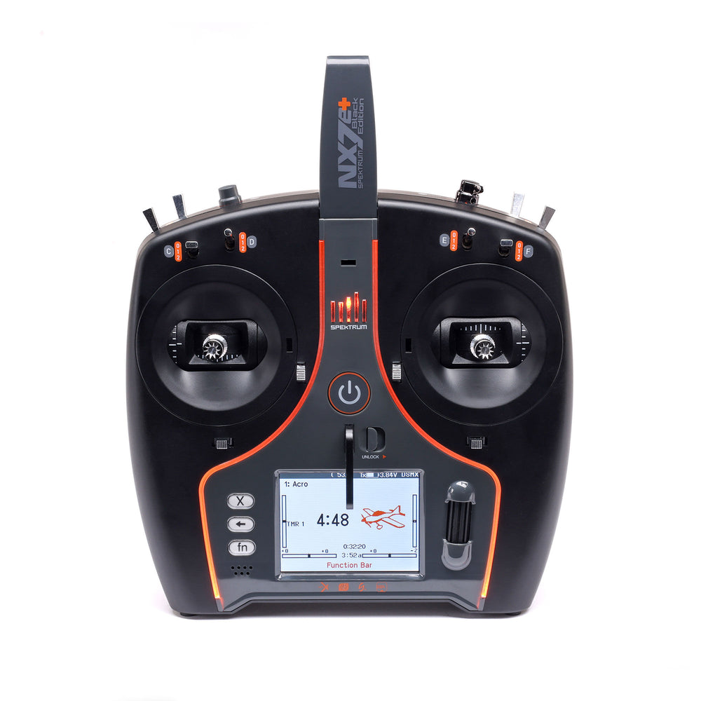 For the beginner to intermediate, BNF-type, and budget-conscious RC pilot, the Spektrum™ NX7e+ Black Edition gives you the unbeatable response of DSMX® technology, the simplicity of Spektrum AirWare™ programming software, and many other features you can’t find on other similarly priced radios. To all this, it adds a stunning, black finish that further sets it apart from everything else in its class.
