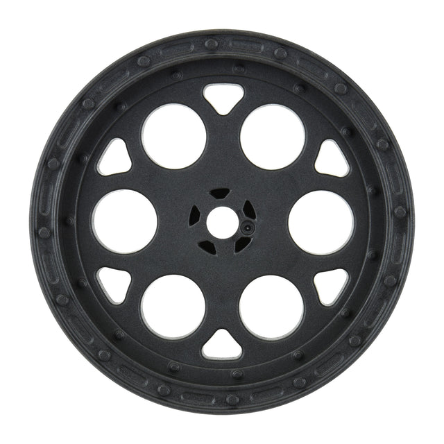 This is a pair of Showtime 2.2" Rear Sprint Car Dirt Oval Wheels. Pro-Line is proud to introduce the Showtime 2.2" Sprint Car Wheels made specifically for Dirt Oval racing! The Showtime wheel features a scale spoke pattern like full-size sprint car wheels and includes an optional dish wheel face cover if that is the look you prefer. Pro-Line's Sprint Car wheels are made from lightweight and durable black nylon and feature a 12mm hex molded into the wheel to fit as many applications as possible. Standard 2.2" Buggy tires glue directly to the Showtime wheel, so you can choose which tires will take you to the winner's circle. It's time for you to make the big show with Pro-Line's Showtime wheels! Get yours today!