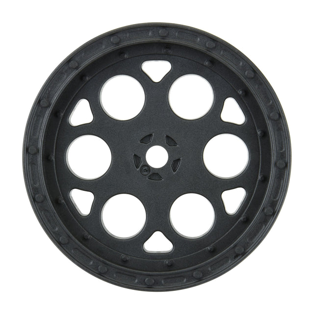 This is a pair of Showtime 2.2" 2WD Front Sprint Car Dirt Oval Wheels. Pro-Line is proud to introduce the Showtime 2.2" Sprint Car Wheels made specifically for Dirt Oval racing! The Showtime wheel features a scale spoke pattern like full-size sprint car wheels and includes an optional dish wheel face cover if that is the look you prefer. Pro-Line's Sprint Car wheels are made from lightweight and durable black nylon and feature a 12mm hex molded into the wheel to fit as many applications as possible. Standard 2.2" Buggy tires glue directly to the Showtime wheel, so you can choose which tires will take you to the winner's circle. It's time for you to make the big show with Pro-Line's Showtime wheels! Get yours today!