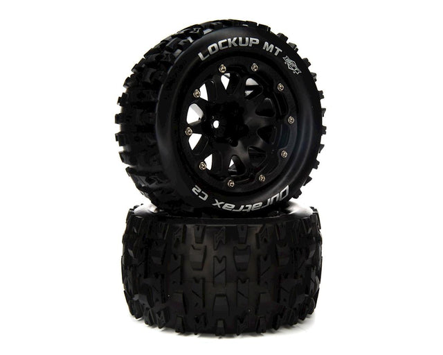 This is a pack of two pre-mounted DuraTrax Lockup MT Belted 2.8" 2WD Truck Tires. These tires are C2 soft rubber compound and are glued to the wheel, compatible on the front or rear of Arrma 3S BLX models that use a 14mm wheel hex.
