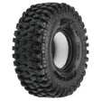 This is a pair of Hyrax 1.9" Rock Crawling Tires. The future of 1.9" Tire Performance has arrived with Pro-Line's all-new Hyrax Tire! Designed from the ground up for maximum grip on the toughest terrain, the Hyrax tire is ready for anything your Scale Adventure might throw at you. The Hyrax features an aggressive and open tread pattern with each tread block containing multiple Sipes for incredible tread flex. The highly detailed connected tread on the sidewall of the Hyrax extends out for unmatched side-hilling performance. The Hyrax also features futuristic stepped tread blocks that create even more forward gripping edges that dig into slick rock like no other scale tire Pro-Line has produced to date! The Hyrax is made from Pro-Line's Legendary G8 material, so you know it provides the performance you can depend on.