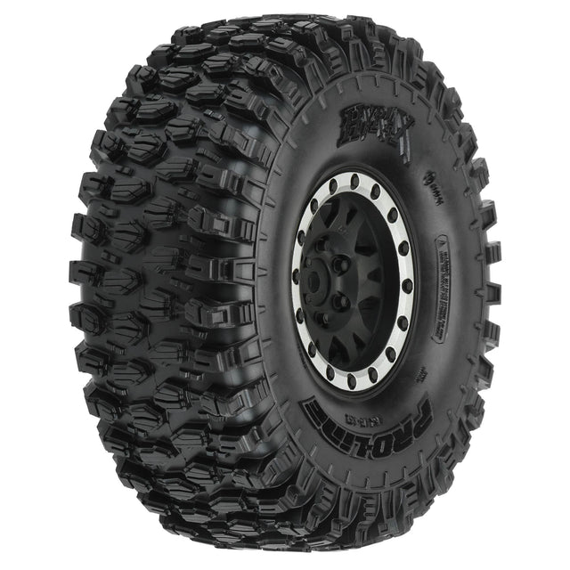 PRO1012813 | Hyrax 1.9" G8 Tires Mounted on Impulse Black/Silver Plastic Internal Bead-Loc Wheels (2) for Rock Crawler Front or Rear