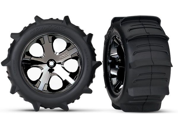 Tires & wheels, assembled, glued (2.8") (All-Star black chrome wheels, paddle tires, foam inserts) (rear) (2) (TSM® rated)