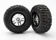 Ultra-soft S1 compound Kumho off-road tires come pre-glued and mounted with foam inserts to satin chrome SCT Split-Spoke wheels with black beadlock-style trim. Fits 12 mm hex