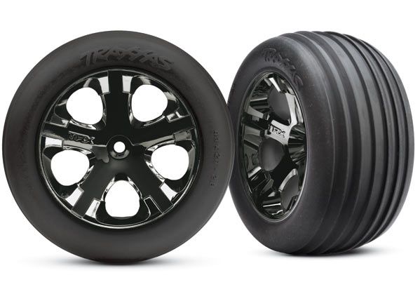 Tires & wheels, assembled, glued (2.8")(All-Star black chrome wheels, Ribbed tires, foam inserts) (electric front) (2)
