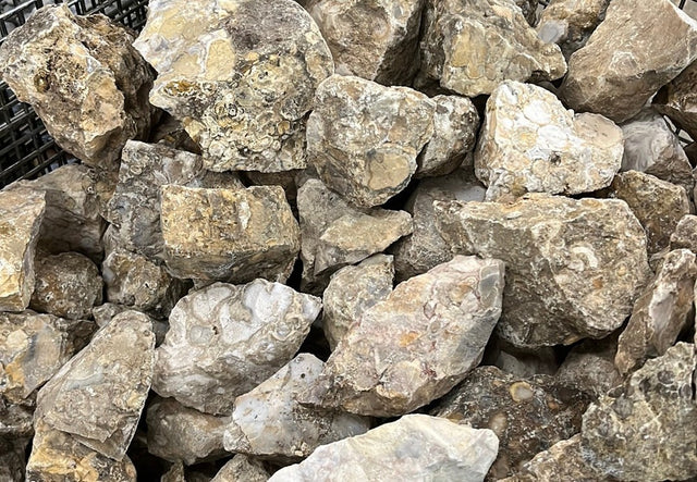 1 Pound per bag. Rock sizes vary. Every bag is a least 1 pound and some may be over slightly. Our Cobra Jasper is larger pieces so each one pound bag may only contain 1-2 rocks.