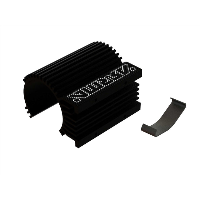 Precision manufactured for a perfect fit – Black anodized finish with etched ARRMA logo for cool looks – Constructed from high-quality light-weight aluminum – Multi-fin design increases surface area for efficient heat transfer – Flat area allows mounting of 35mm fans - Included heatsink clip - Suited to 40mm diameter motors