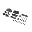 This Bulkhead, Pin Mounts, Steering Rack, and Servo Saver set for the Losi Micro-B includes bellcranks, rack, servo saver, front bulkhead, rear hinge pin mounts, screws, rack bushings, spring, and servo saver screw. High quality composites.