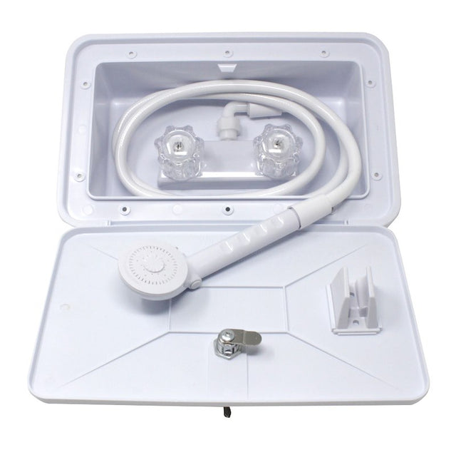 Exterior Shower; 6 Inch Height x 11-1/16 Inch Width Cut-Out Dimension; 7-3/4 Inch Height x 12-5/8 Inch Width Overall Dimension; Polar White; With Lock