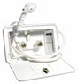 Exterior Shower; 12-3/8 Inch Width x 8-3/8 Inch Height/ Cut-out Dimensions 10-3/4 Inch Width x 5-3/4 Inch Height x 3-11/16 Inch Depth; White; Plastic Underbody; With Lock; With 2 Knob Handle/ Hand-Held Shower Head With 59 Inch Vinyl Hose; Plastic Compression Valve; With Individual Box