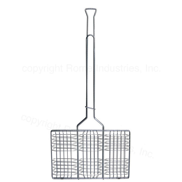 Campfire Grill Basket; For Grilling Burgers/ Chops And Crab Cakes; 9 Inch x 13 Inch Basket; 1 Inch Depth; 29 Inch Overall Length; Six Wire Pockets; Chrome Plated; Steel; Without Grill Stand; With O-Ring Closure