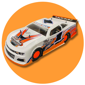 Introducing the Shark T.K.O.. The T.K.O. is a rendering of a 2023 Camaro dirt oval street stock. Shark's new body is based on the crate street stocks racing down south. Shark is entering this market giving the look we think most will love..