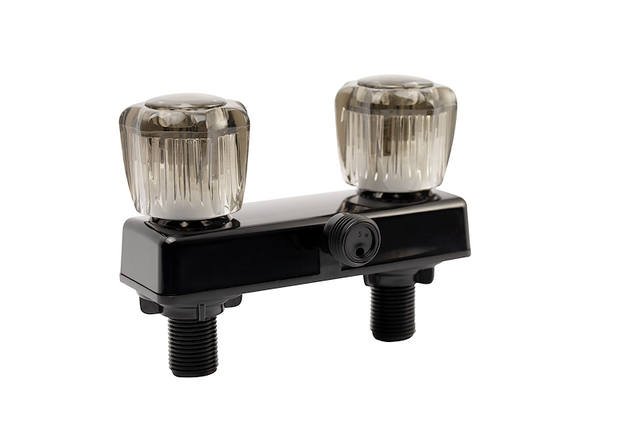 Shower Control Valve; 2 Valve; 4 Inch Center Distance; Smoked Crystal Acrylic Knob Handle; Black; Plastic