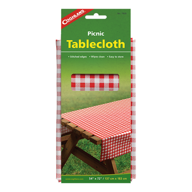 Tablecloth; Rectangular; 54 Inch Width x 72 Inch Length; Red And White Checkered; Polyethylene; Without Bench Covers